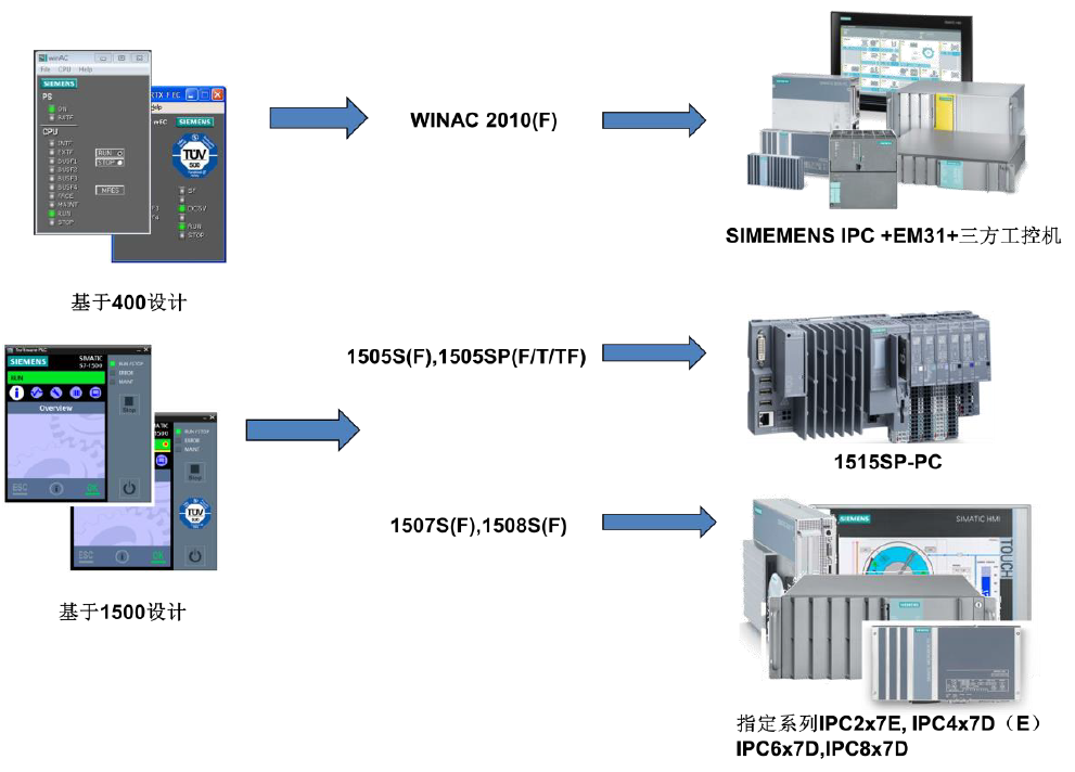 西門(mén)子(zi)軟PLC暫包括2個(gè)系列,基于400設計(jì)的(de)WINAC系列,基于1500設計(jì)的(de)1500S軟PLC系列,SIMATIC WinAC RTX (F) 2010 将于 2018 年 10 月 1 日起被列為(wèi)逐步淘汰的(de)産品,替代商品為(wèi)1500S系列軟PLC。1500S系列産品包括1505SP(F/T/TF)産品預安裝于1515SP PC整體出售。還包括1507S、1508S系列軟PLC,單獨出售,自行(xíng)選配安裝的(de)工控機,也可以選擇預安裝的(de)嵌入式組合包(具體參見工控機選型信息與150xS對應版本手冊)。